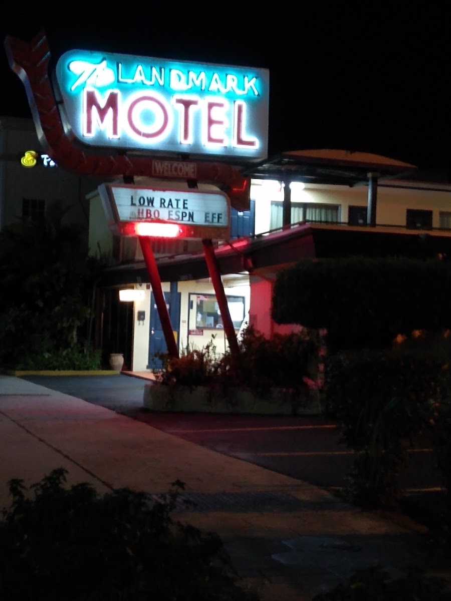 The husband and I stayed at the Landmark Motel Thursday night. It was great…just as advertised. Clean and comfortable rooms. No frills, but all we needed. The owners were very nice and eager to please their customers. Perfect location. We walked 1 block over to enjoy Crescent Lake Park, and Sunken Gardens is right across the street from the Motel. Lots of restaurants nearby. We were very pleased to find Landmark Motel: clean, inexpensive, and great location!